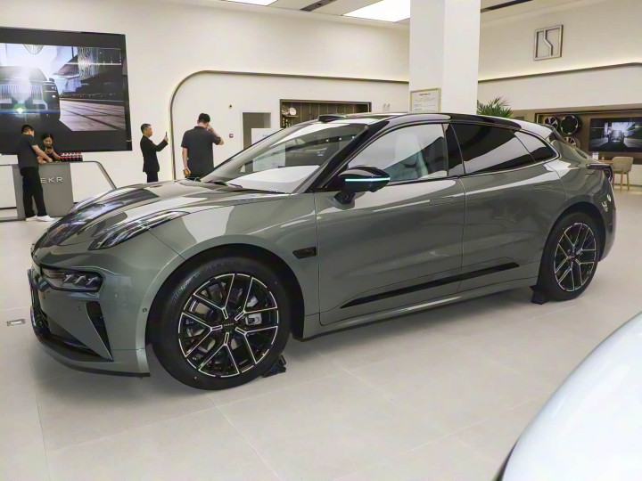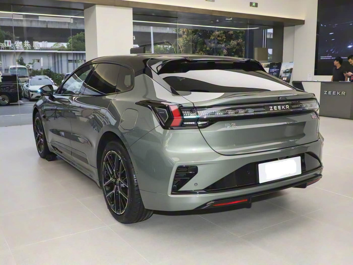 再来看车身侧面部分,车身侧面是极氪 001 的 “颜值核心区”,猎装造型从车头延伸至车尾的溜背线条舒展流畅,既避免了 SUV 的臃肿,又解决了传统轿跑的空间短板。“短前悬、长轴距” 的黄金比例搭配 21 英寸运动轮毂,让 4977mm 的车长显得格外修长,红色制动卡钳的点缀更添性能气息。无框车门与隐藏式电动门把手的组合,让侧面视觉干净利落,开门时把手自动弹出的仪式感十足。值得称道的是细节设计,车窗采用双层夹胶隔音玻璃,能有效隔绝风噪,车身提供晨雾米、极光紫等 7 种配色,其中哑光漆面版本搭配碳纤套件,原厂即带改装范儿,回头率远超同竞品的家用车。