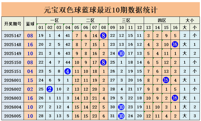 上期回顾:双色球第2026005期开出奖号:红球01、20、22、27、30、33;蓝球10,其中红球三区比为1:2:3,奇偶比3:3,蓝球开出大偶数号码10。