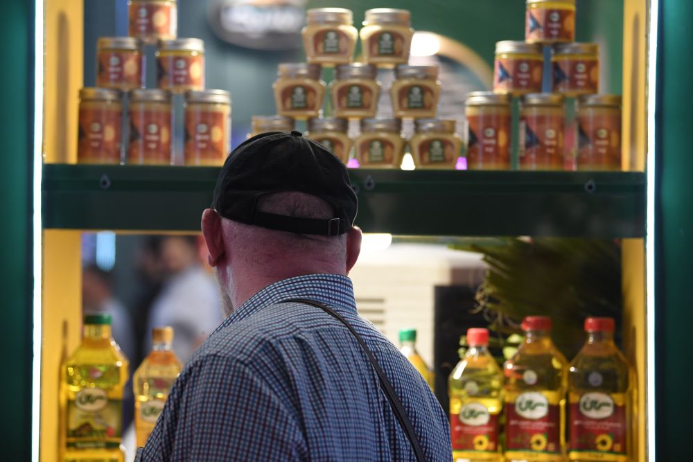 2025年5月22日,一名男子在德黑兰参观伊朗农业食品展览会。新华社记者沙达提摄